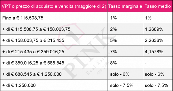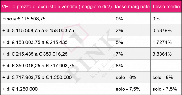 Nel 2019 il tasso in vigore era del 6% per tutte le proprietà oltre € 717.903,75. Diventa il 7,5% per immobili oltre 1.250.000 euro.